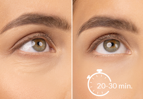 Kollageeni, retinooli, keramiidide ja C-vitamiiniga plaastrivalem pakub igakülgset vananemisvastast ja toitvat toimet. Juba pärast esimest kasutamist muutub nahk sügavalt niisutatuks, siledamaks ja toonuses olevamaks. Regulaarne kasutamine aitab vähendada tumedaid silmaaluseid ja turseid, parandab naha pinguldatust ja kirgastab silmaümbrustandes nahale nähtavalt noorema ja puhanud välimuse, mis on võrreldav mesoteraapia või karboksüteraapia tulemustega.